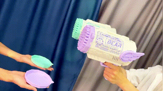 The bubble hole can spray 7000+ colorful bubbles flying in the sky every minute. When you pull the trigger, bubbles will be ejected, the muzzle lights.